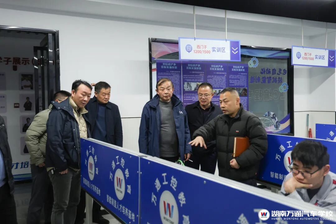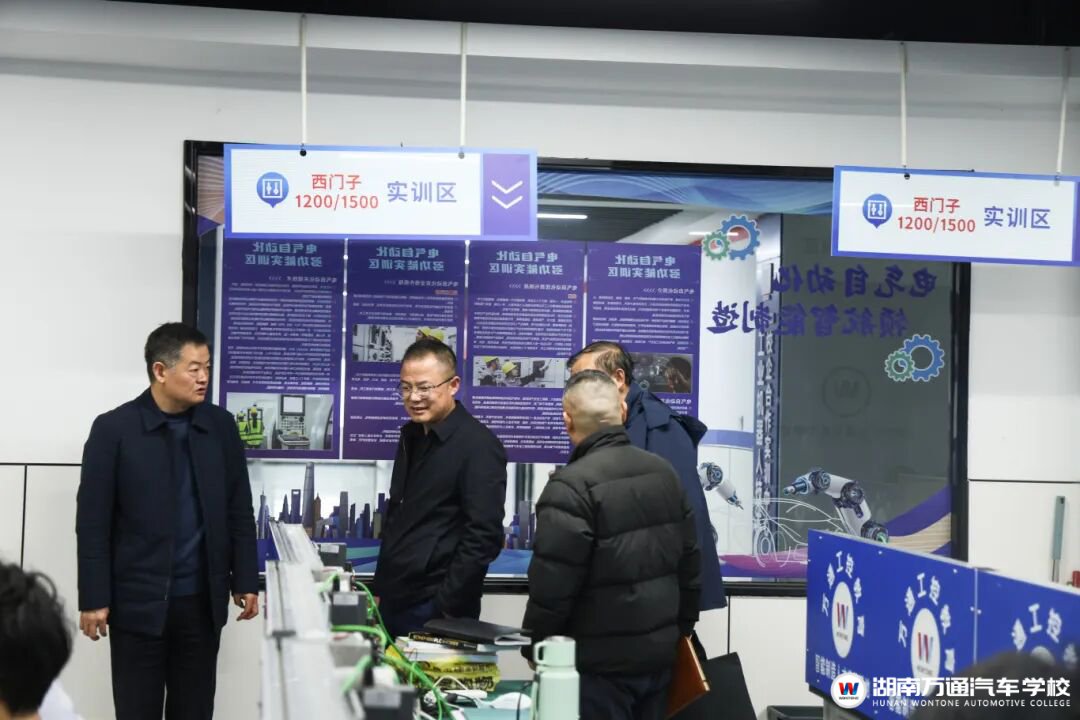 座谈会后,领导专家一行实地考察了学校电气自动化/工业机器人实训中心、新能源汽车实训中心、智能网联汽车实训基地等教学实践场所。