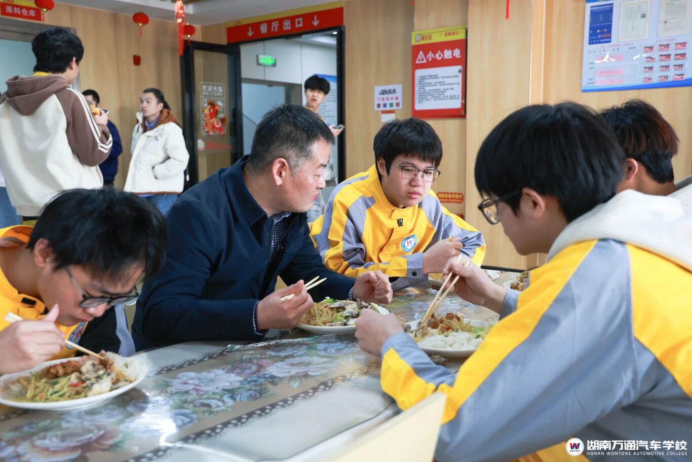 “平时是否经常在食堂吃饭?”“觉得食堂的饭菜怎么样?”“最喜欢吃食堂的哪个菜?”陪餐过程中,校长亲切问候同学们,并向他们询问了关于食堂饭菜的意见建议。同学们分别从菜品更新速度、阿姨打菜“手抖”、食堂的基本设施还有待升级等各方面提出了自己的意见与看法。